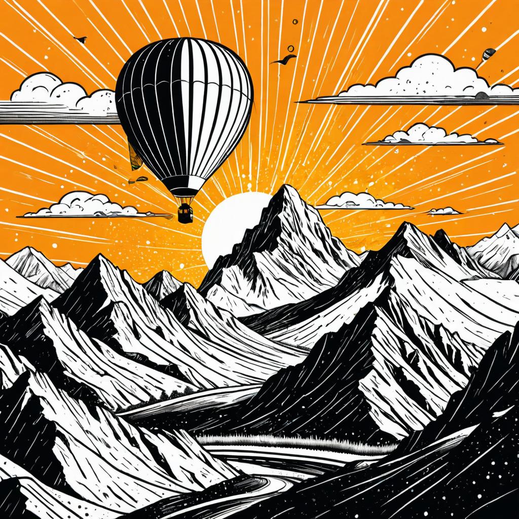 A comic-style illustration of a frog catching a fly with its tongue, with splashing orange juice and swirling water splash and cartoon-inspired splatter. Flat mono-color background, cel shading, HDR, crisp and clean design