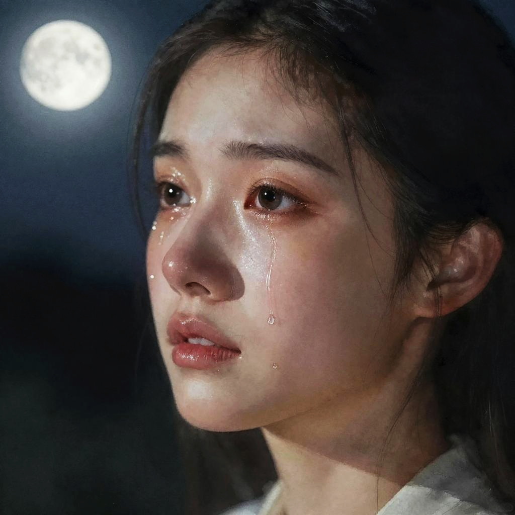 Tears captured mid-drop on a weathered cheek under a stormy sky filled with heavy rain, textured and layered with high contrast lighting, emphasizing sorrow and resilience, painted in a moody, impressionistic oil painting technique.