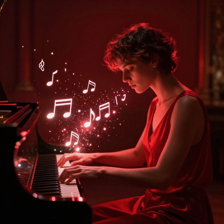 A crimson piano plays melodies so haunting that the notes rise as visible, glowing wisps, forming ephemeral animals that vanish upon being heard.
