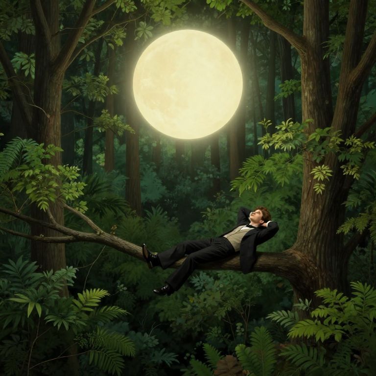 A whimsical scene where a colossal man's face looms over a serene landscape, his nose and eyebrow seamlessly integrated into a grand stone bridge that spans a tranquil river, supporting a quaint village nestled beneath a luminous moonlit sky.