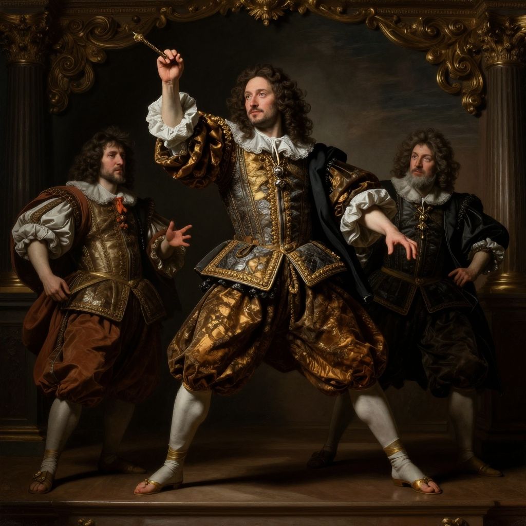 Hyperrealistic art (Baroque), (Dramatic lighting, dynamic composition, intricate details, rich color palette, ornate decoration), by (((Rembrandt van Rijn), Diego Vel├бzquez, influenced by the works of Peter Paul Rubens) and Anthony van Dyck). . Extremely high-resolution details, photographic, realism pushed to extreme, fine texture, incredibly lifelike