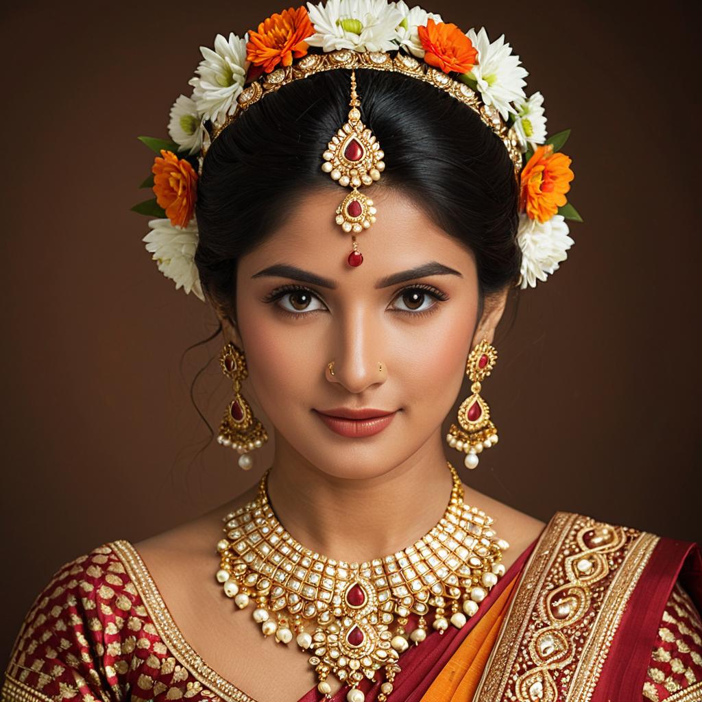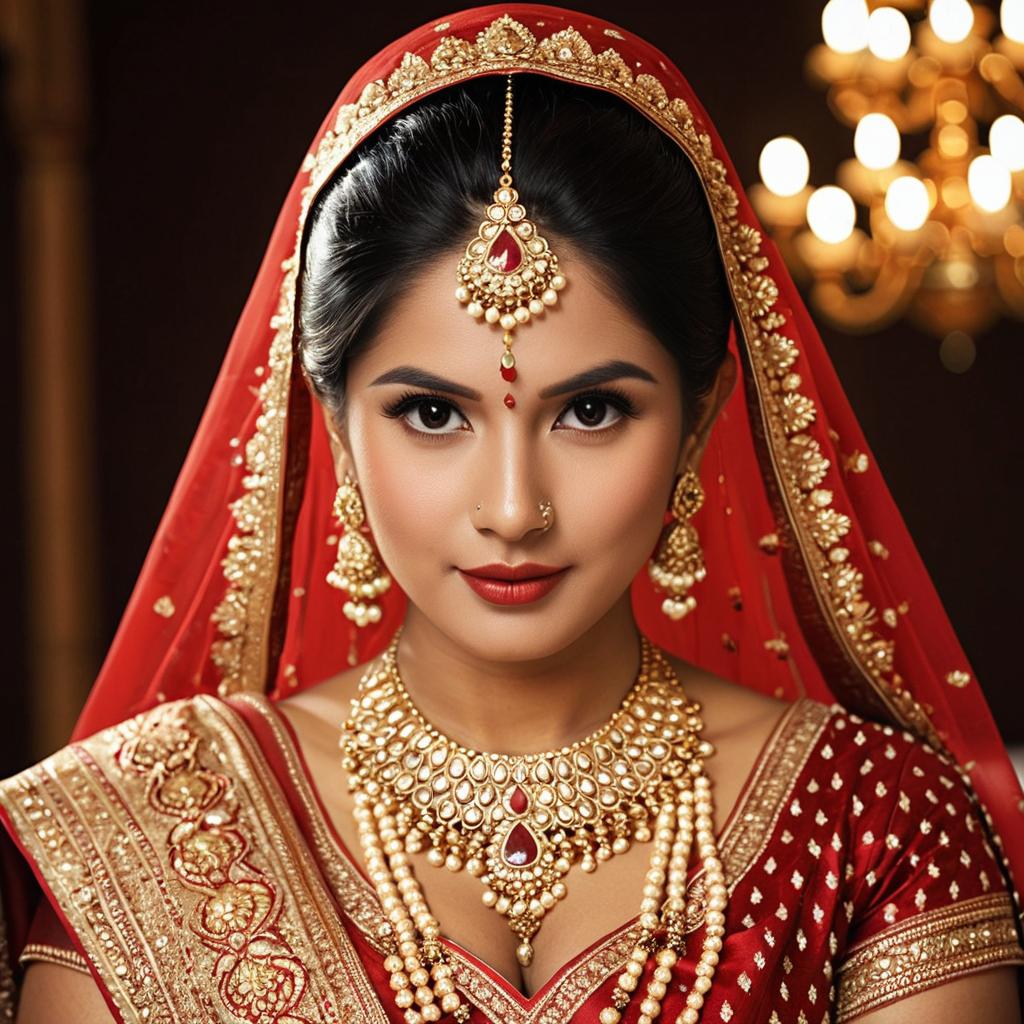 Indian Bride in Traditional Red and Gold Lehenga
