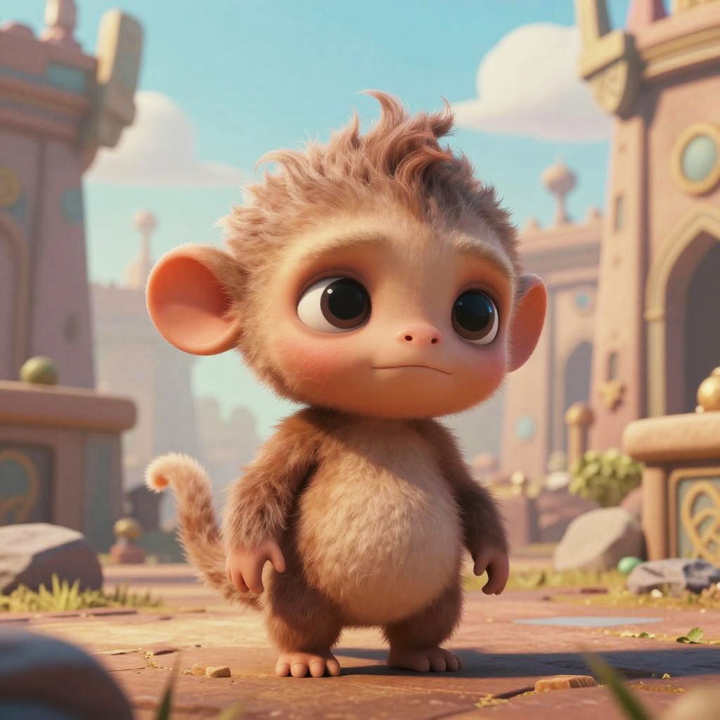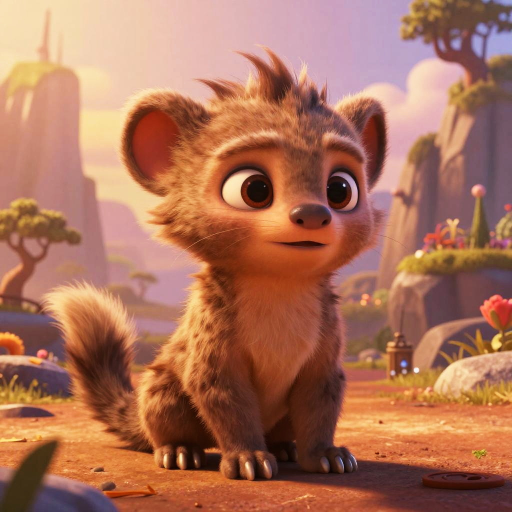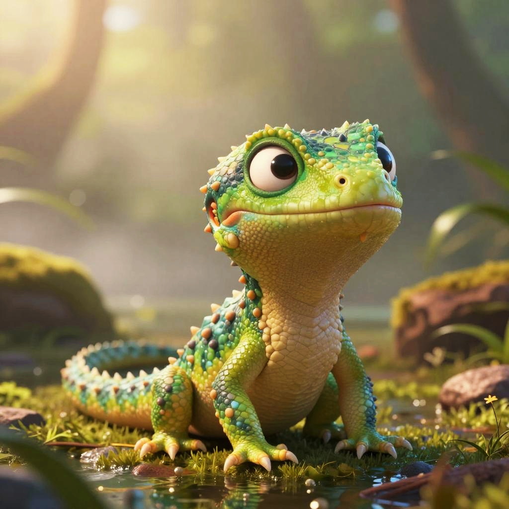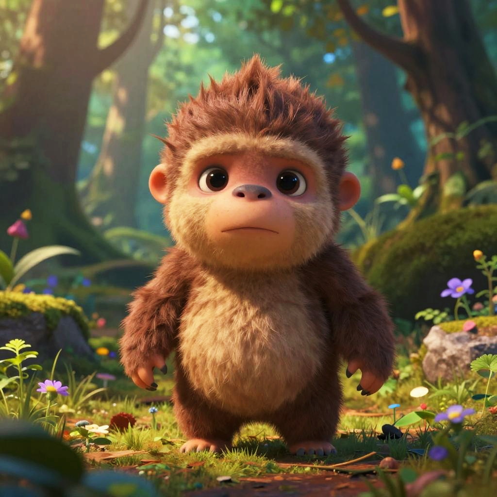 Vibrant Pixar-style image of a baby goblin, cute yet slightly creepy, set in an enchanted forest. Ultra-realistic cinematic photography style, detailed and hyper-realistic, 8k resolution, color grading with high depth of field, captured with 50mm lens.