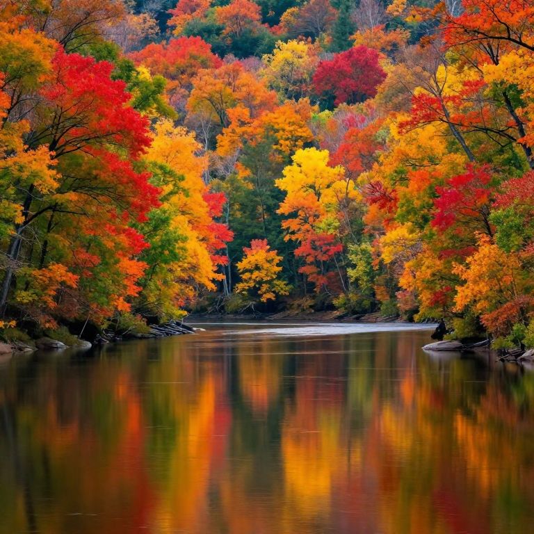 Vibrant Autumn Foliage by River