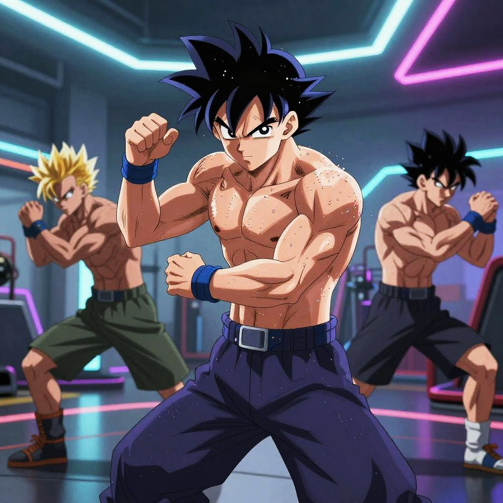 Buff Anime Characters Training Futuristically