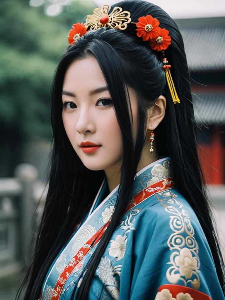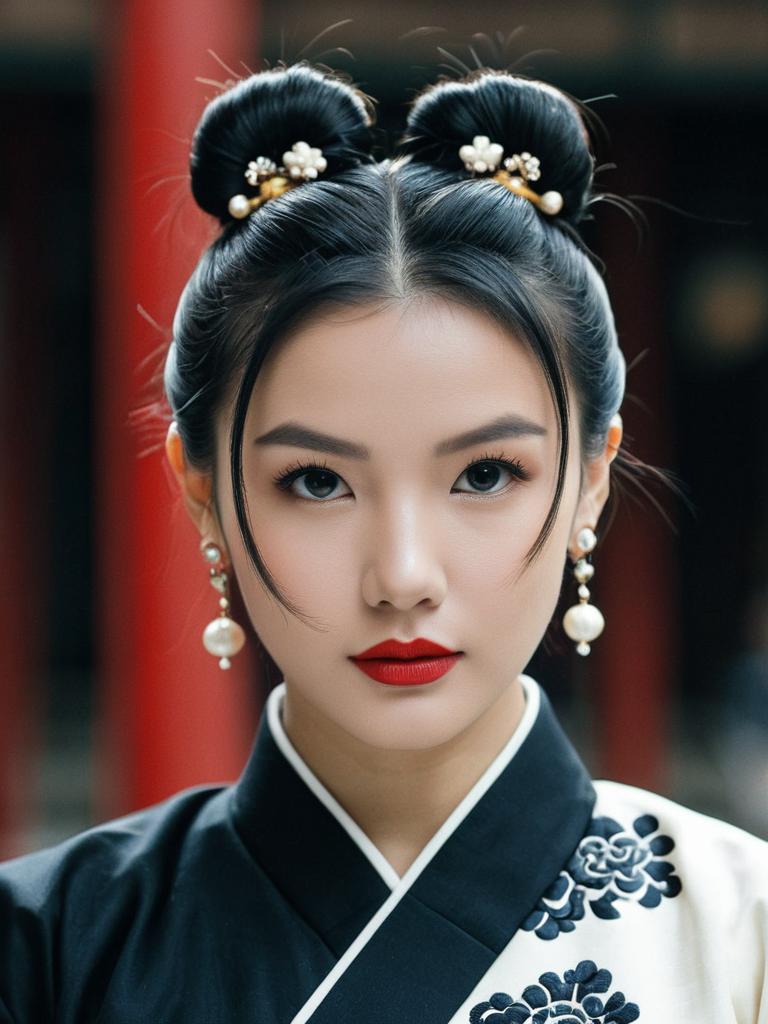 Woman in Traditional Chinese Costume with Hair Ornaments