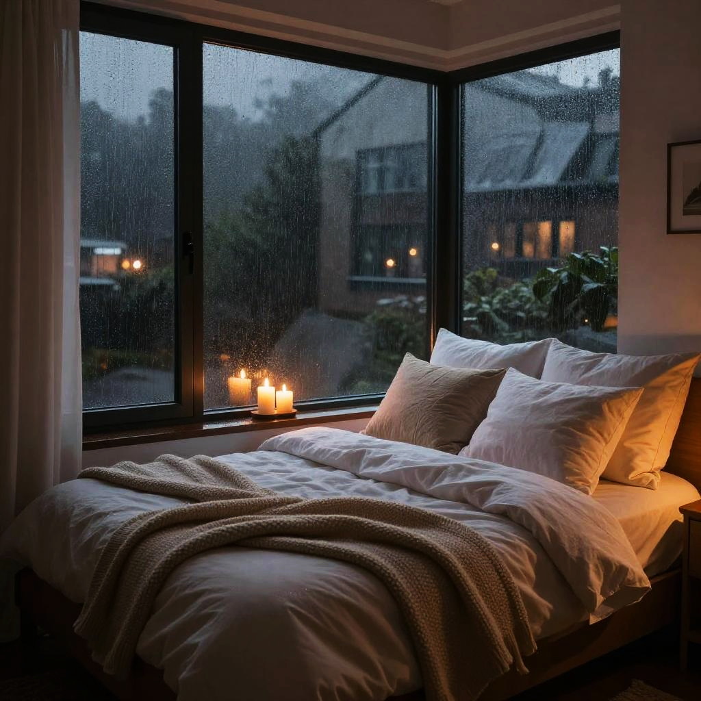 Comfiui reading nook by a window, overstuffed armchair with layered cushions, soft knitted socks, a stack of books, lush green plants outside, warm honey light illuminating, serene and comforting mood, highly detailed digital art.