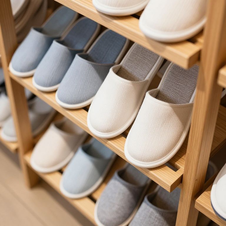 High Angle View of Slippers Rack