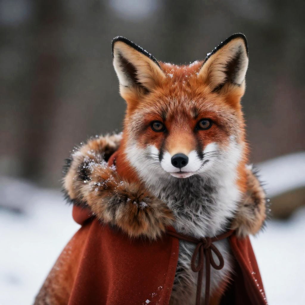 Foxie european model, gradient red-orange, elegant fur-lined cloak, winter forest, Snowflake, natural skin texture, 4k textures, soft cinematic light, photolab, intricate, elegant, highly detailed, sharp focus, ((((cinematic look)))), soothing tones, intricate details, low contrast, exposure blend, hdr, faded, hyperdetailed, backlighting, cowboy shot, 85mm, close-up, sparkle, award winning, best quality, 4K