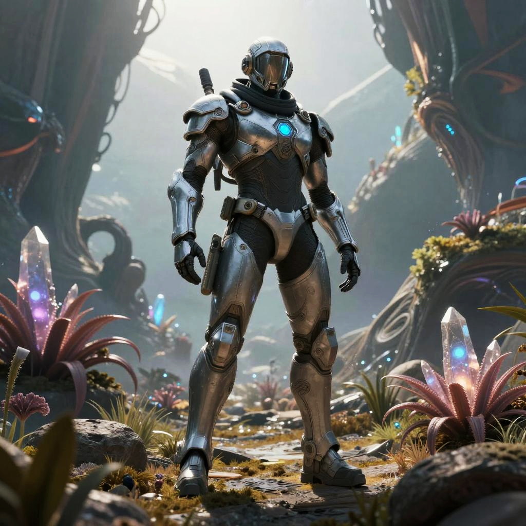 Futuristic Warrior in Dynamic Battle