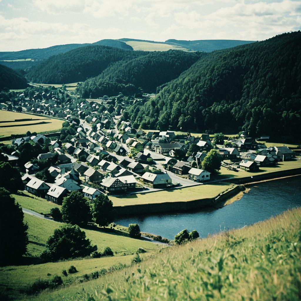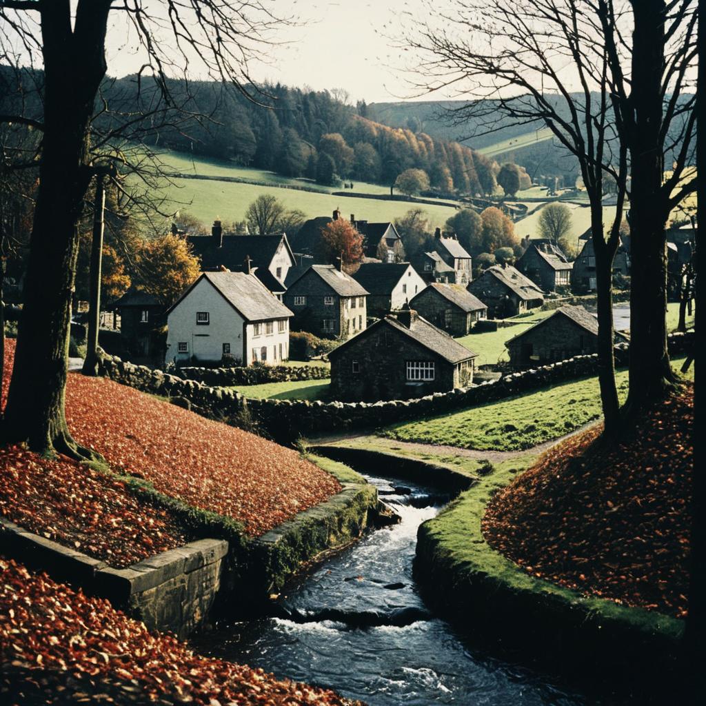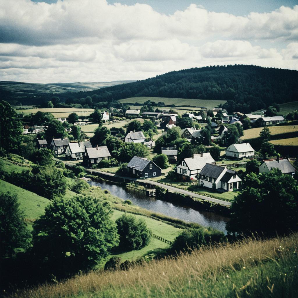 A landscape image of a imaginary town called Brightwater, a small but beautiful, idyllic land.