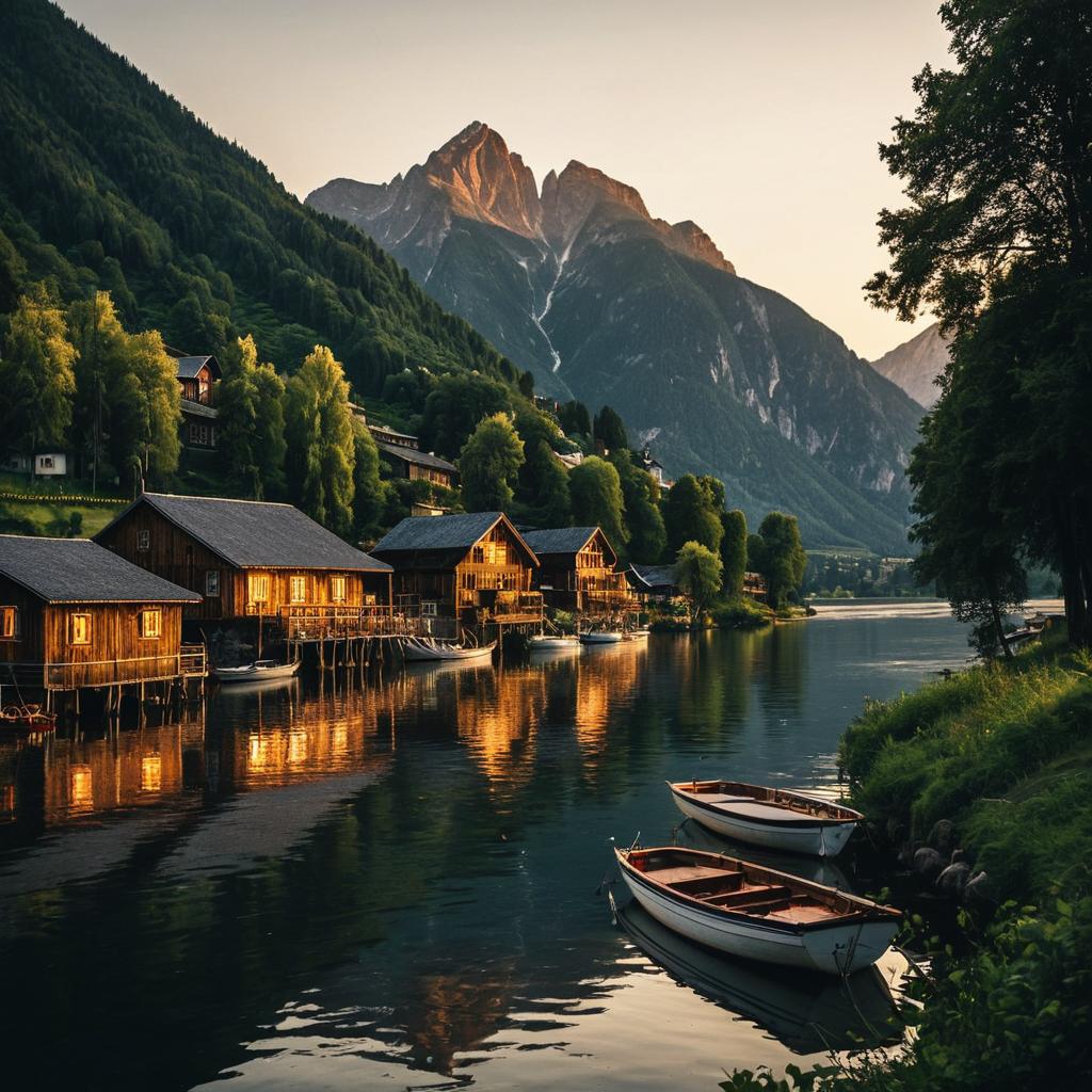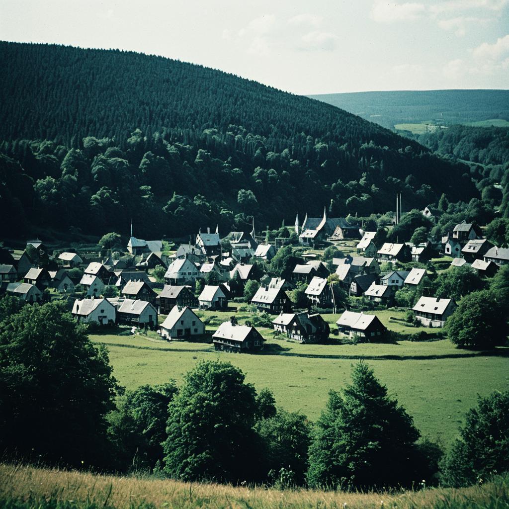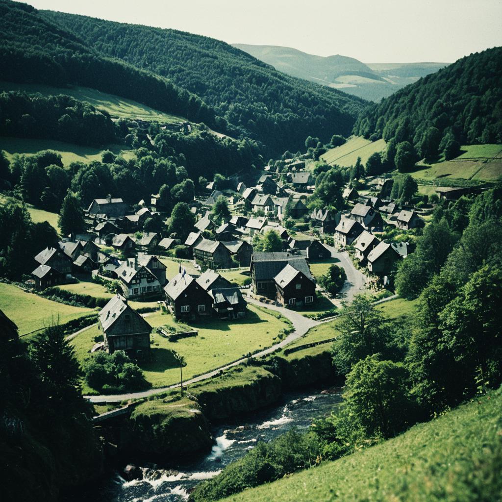 A landscape image of a imaginary town called Brightwater, a small but beautiful, idyllic land.