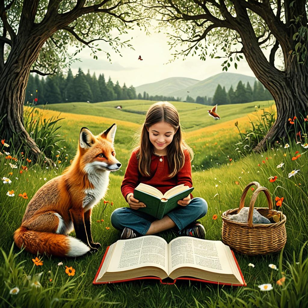 Whimsical children’s book illustration of a brave young knight with a friendly lion companion, colorful forest setting, playful style.