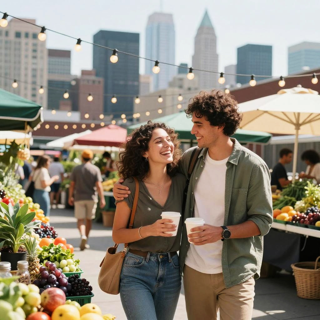Joyful Couple at Rooftop Farmers' Market