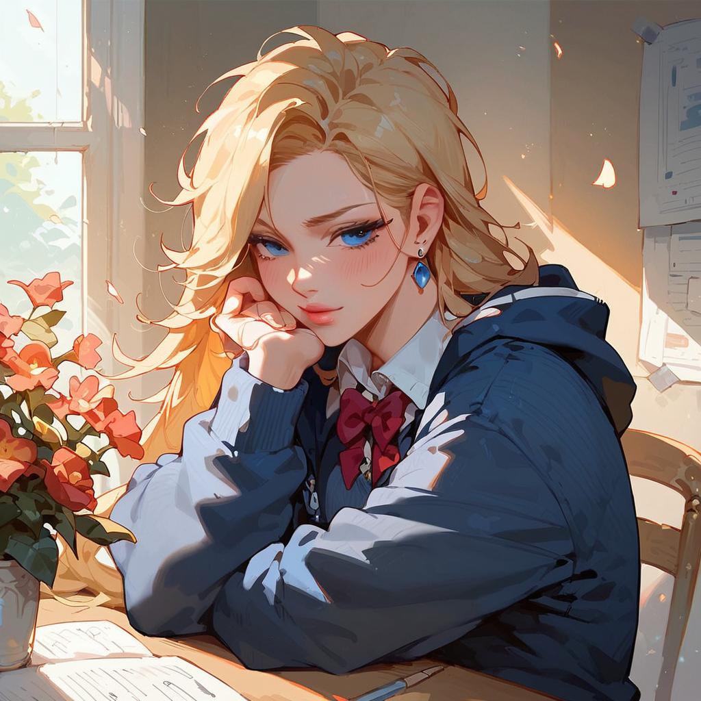 Score_9, score_8_up, score_7_up, yoor_foorger, school_outfit, flower_bezel