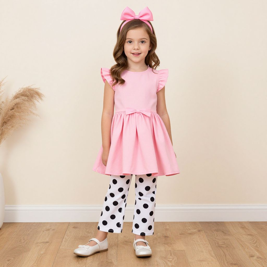 Jojo Siwa Costume, little girl in a pink dress and polka dot pants