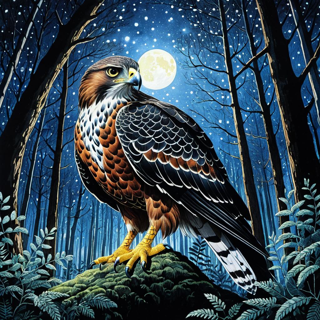 The very pretty elk and beautiful creatures at a magical night forest. Illustration art by Loish. 3/4 body portrait, 3D, watercolor and ink, impasto, volumetric lighting, spectacular, intricate, beautiful, fantastic view, extremely detailed.