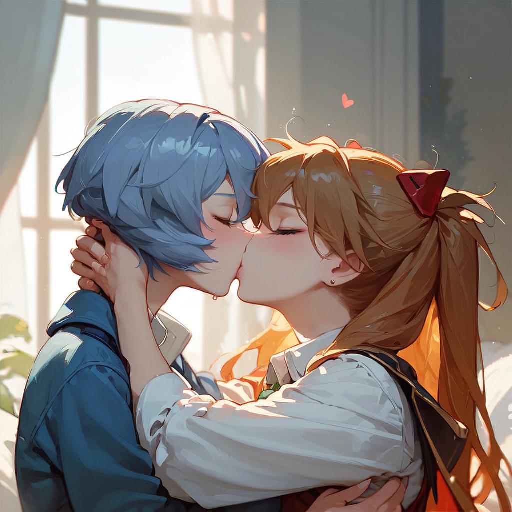 Score_8_up, score_7_up, score_6_up, best quality, masterpiece, uncensored, by ke-ta, source_anime2girls hugging and kissing each other, yuri, souryuu asuka langley, rei ayanami