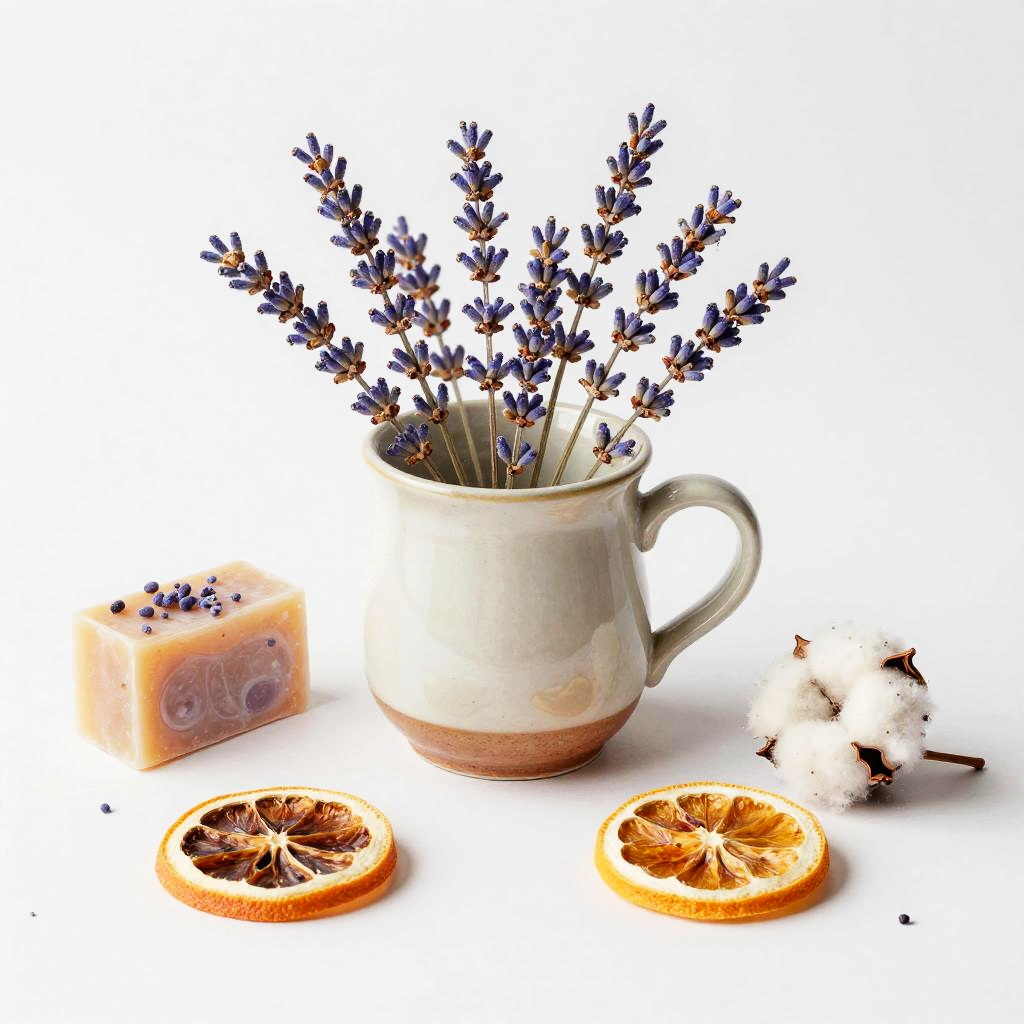 Whimsical Still Life with Clay Pitcher and Orchids