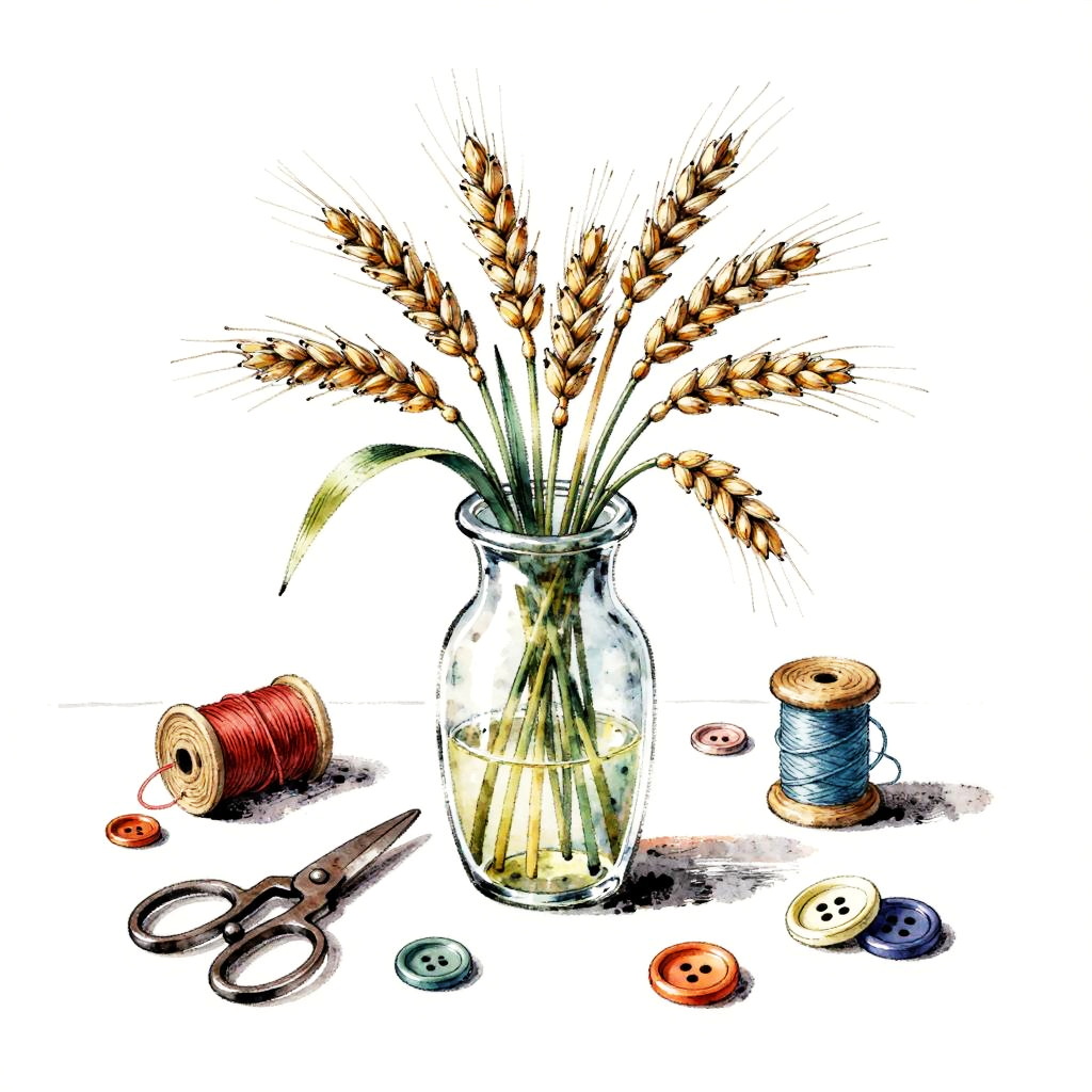 A pastel drawing of a whimsical still life featuring a hand-thrown clay pitcher with delicate yellow and pink orchids. Surrounding the pitcher are soft feathers, old coins, and a small blue book, all arranged playfully on a clean white backdrop. The image showcases lively textures, soft shadows, and a balanced, inviting composition with charming handcrafted details.