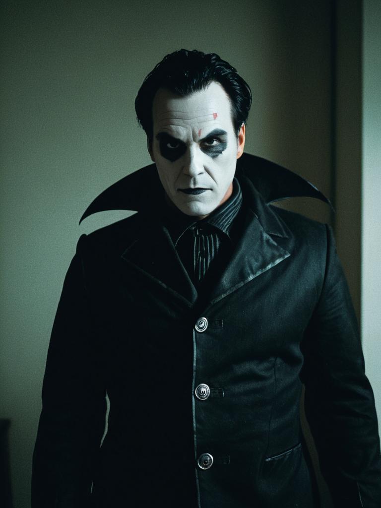 Man in High Quality Halloween costume, cinematic realism, dramatic editorial photo