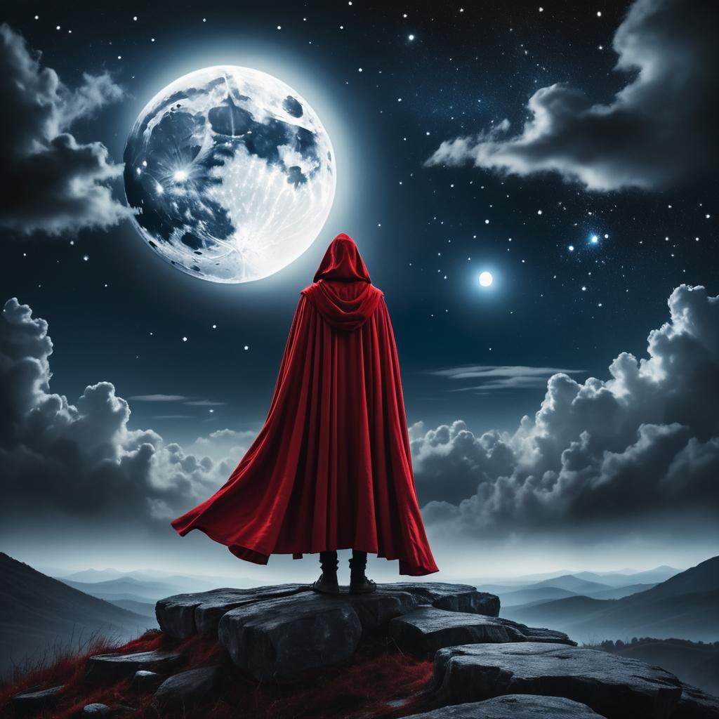 Figure in Red Cloak Under Full Moon