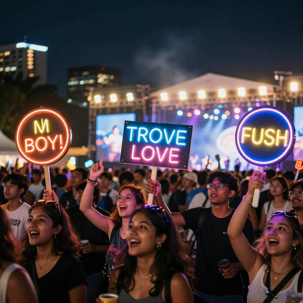 Vibrant Neon Concert Crowd Signs