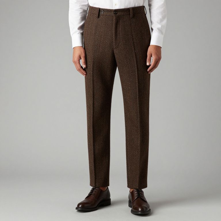 JOHN - Tobacco Brown Tweed Herringbone Trousers - Jack Martin Menswear
