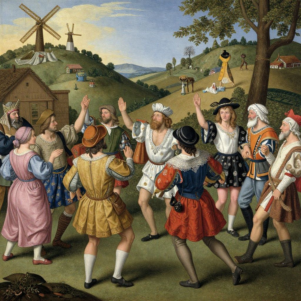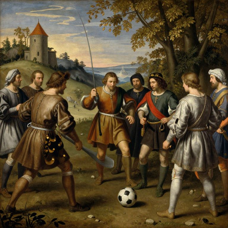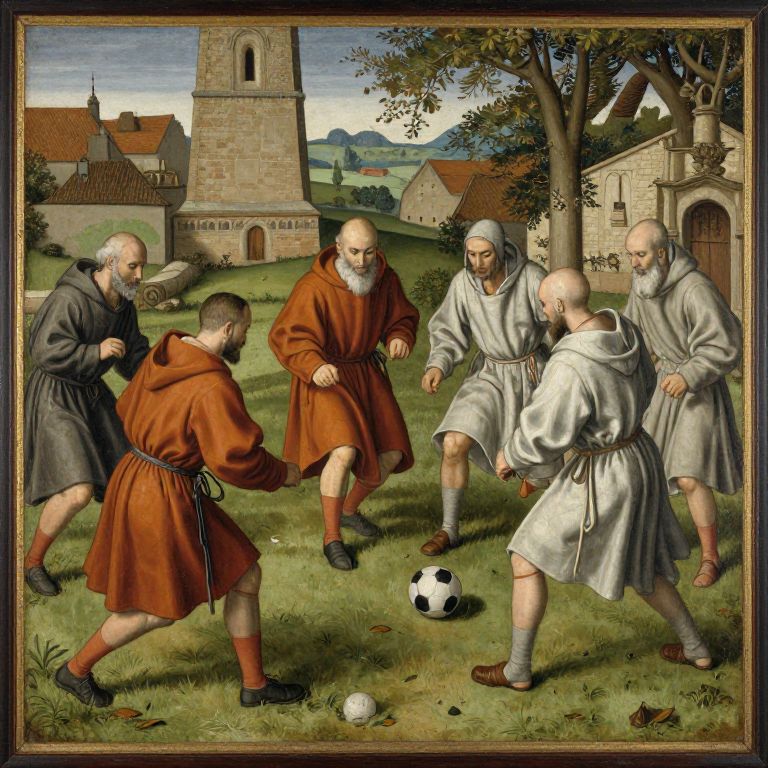 Dean Cornwell A painting of the catholic settlers in america, soccer references, realistic, XVth century style,