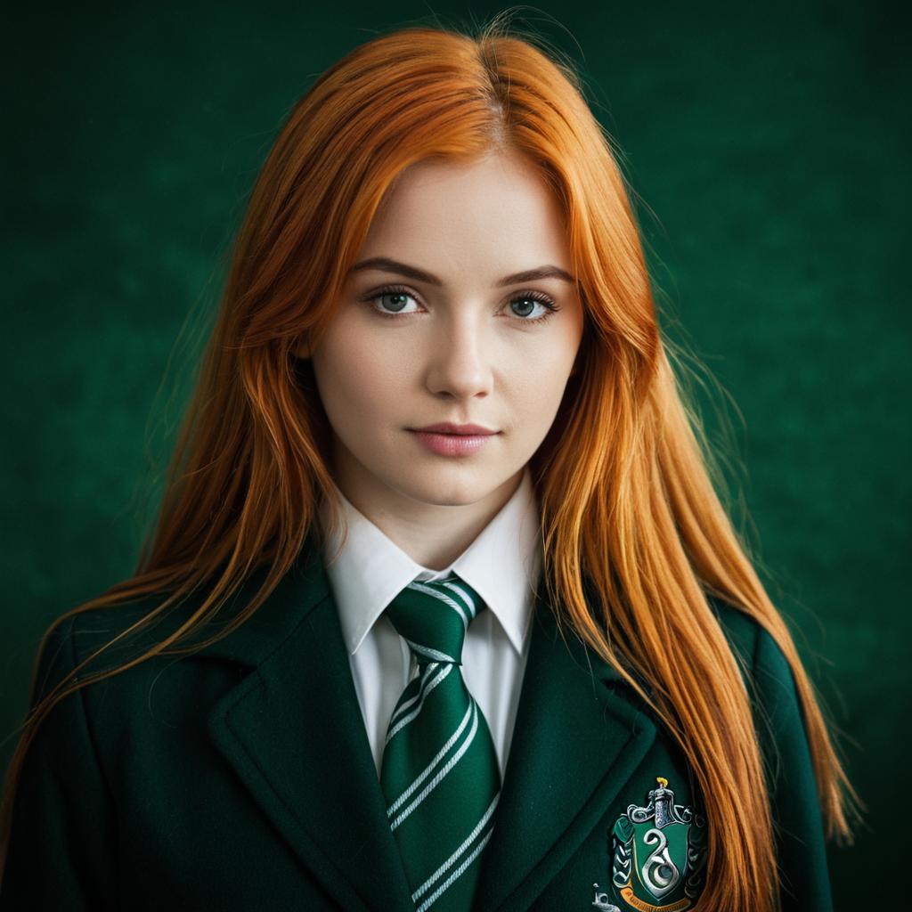 Fun teachers costume,glasses, realistic, necktie, 1girl, belt, long hair, brown hair, school uniform, blurry background, indoors, blurry, green necktie, solo focus, long sleeves, skirt, white shirt, shirt, looking at viewer, wavy hair, closed mouth, jacket, solo, brown belt, lips, standing, collared shirt