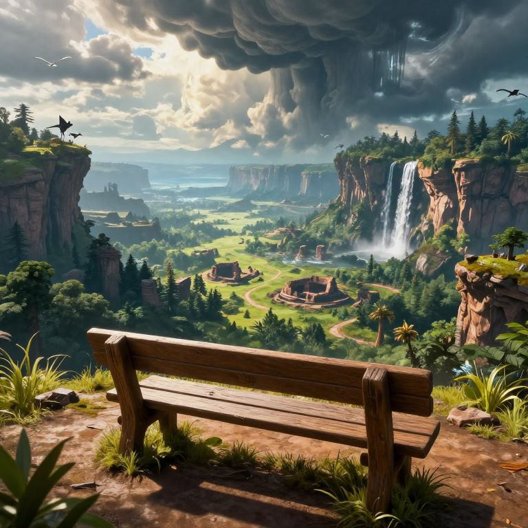 A fantastical 3D-rendered scene showcases a serene, high-definition landscape featuring interconnected stone pathways and bridges that gracefully curve along the edges of floating cliffs, each illuminated by warm, golden-hour lighting, creating a magical atmosphere reminiscent of a fairytale world.