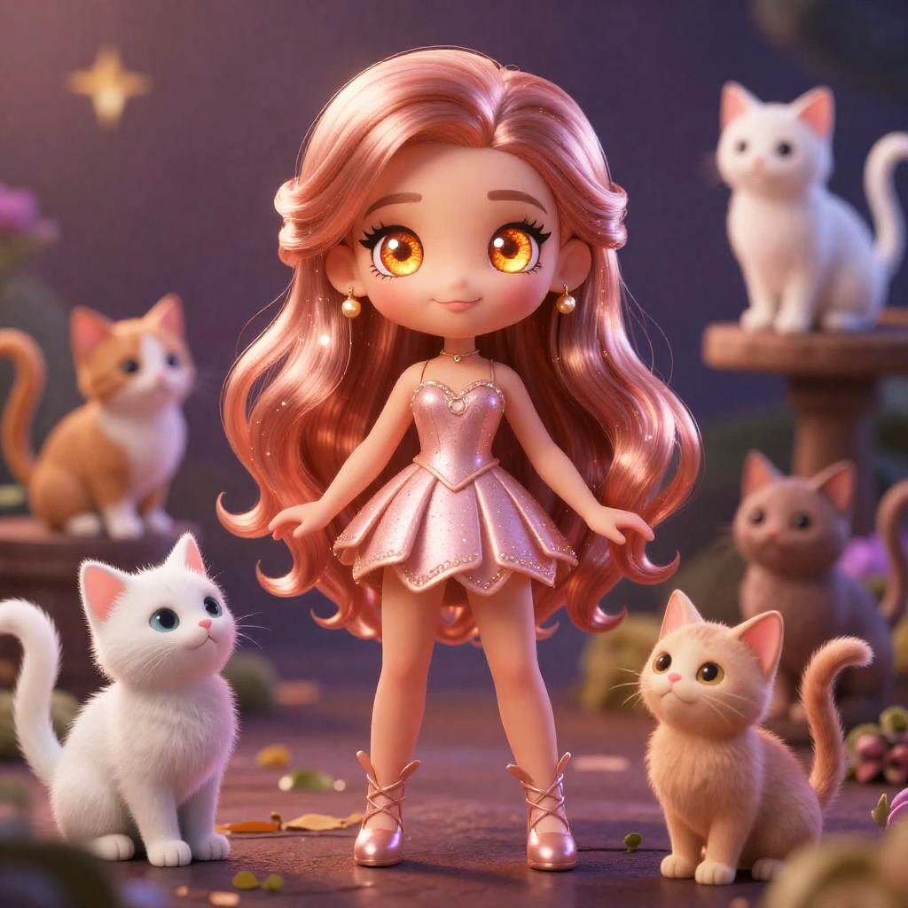 A whimsical illustration featuring a girl inspired by Stella from Winx Club with lime green hair and golden hazel eyes, surrounded by fluffy bunnies in a sunny meadow, showcasing her full body.
