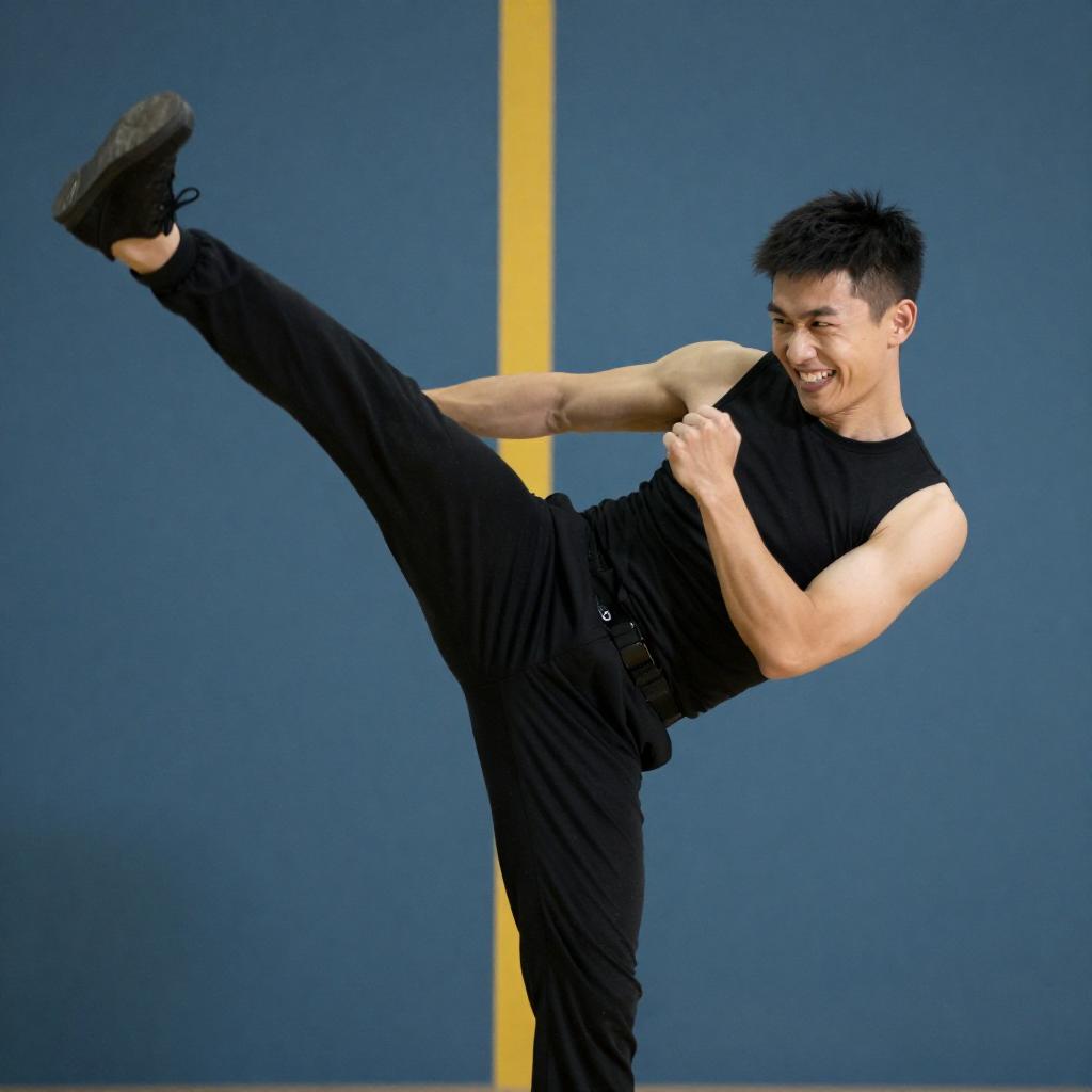Martial Arts Pose with Intense Focus
