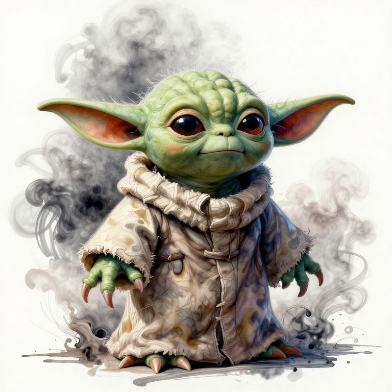 Realistic Watercolor Fantasy Yoda Character