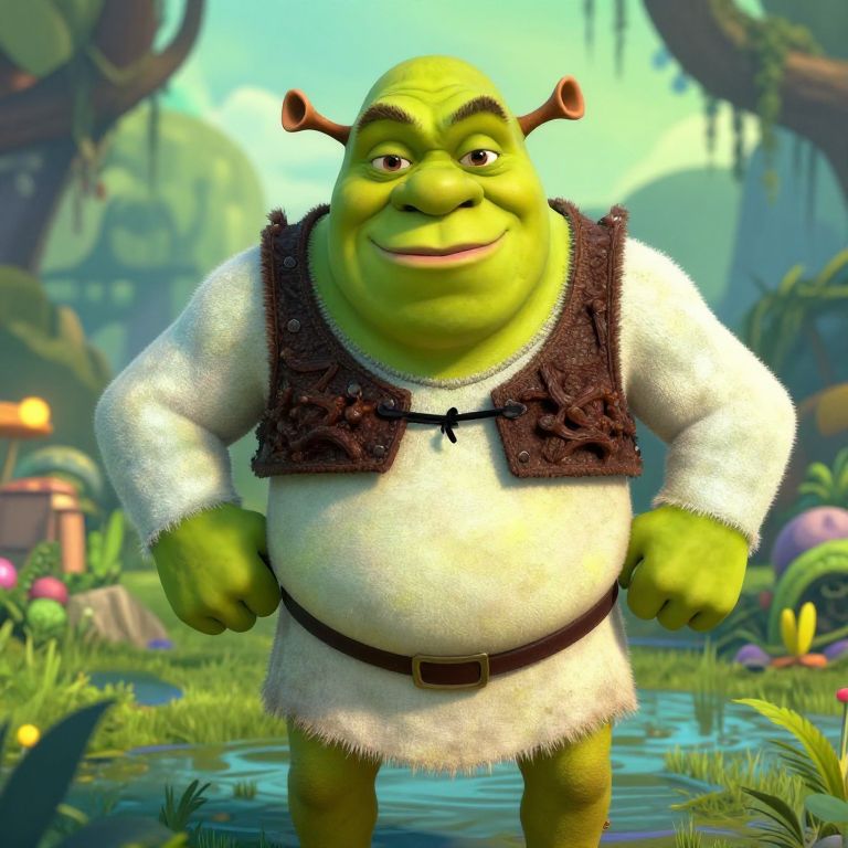 Goofy ahh Shrek pictures featuring a humorous, exaggerated green ogre with silly facial expressions, vibrant swamp background, cartoonish style, bright colors, playful atmosphere, joyful and funny mood, exaggerated features and comical poses.