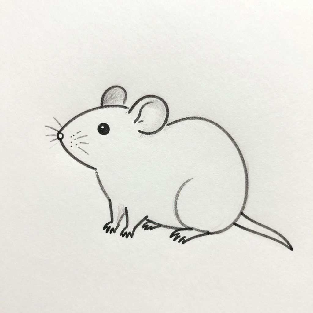 Rat sketch easy, minimalist hand-drawn style rat sitting calmly, simple lines and soft shading, easy and clean pencil sketch on white paper, cozy and inviting illustration, focus on smooth curves and friendly expression.