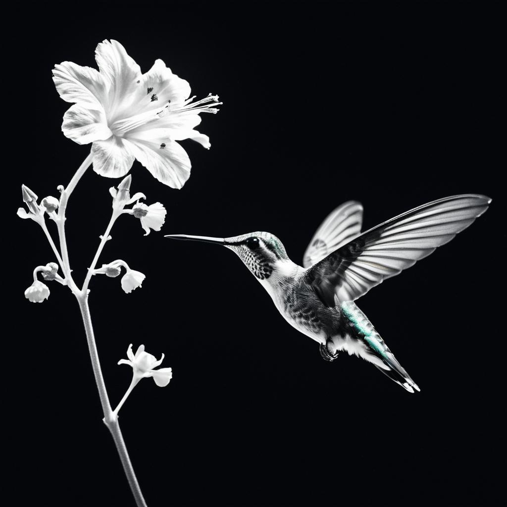 X-Ray Style Hummingbird Near Flower