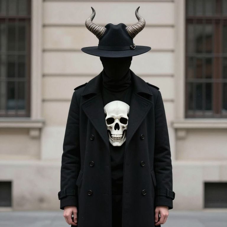 Person in Black Coat with Skull