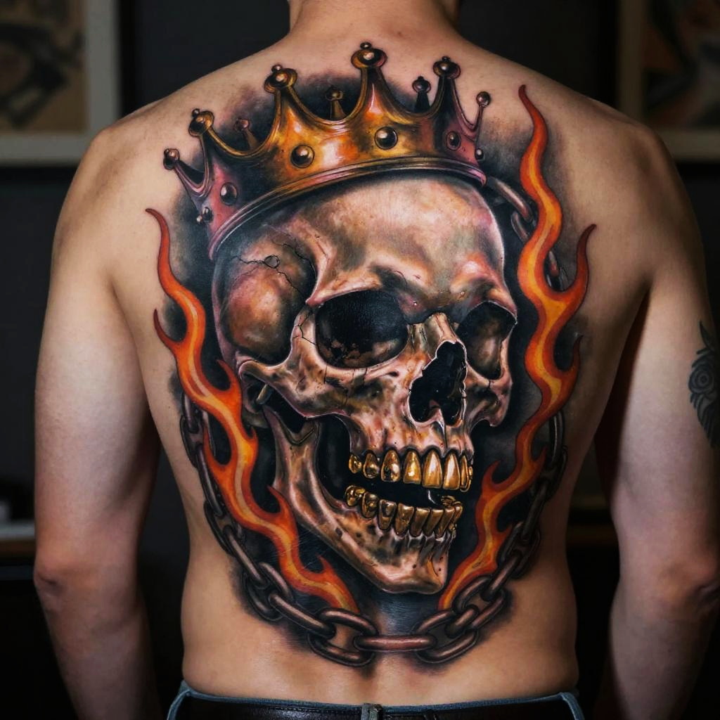 Skull with Vibrant Snake Tattoo