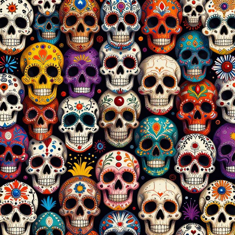 Pigment many mexican skulls illustration very detailed colorful and vibrant colors hiphop style art- over 50 mexican skulls,