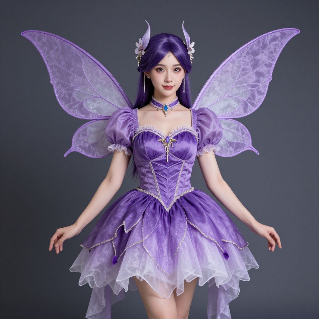 Purple Fairy Costume, dressed in a purple dress and purple wings