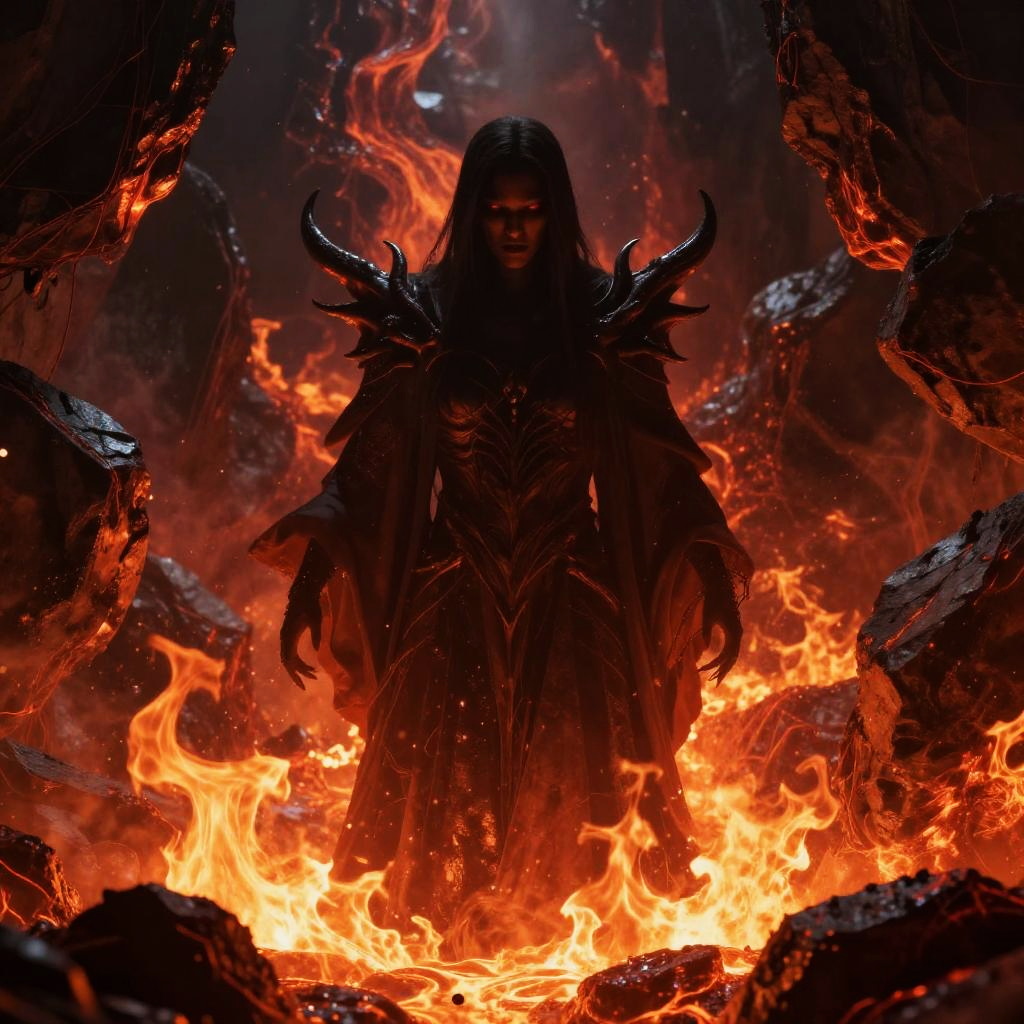 Shadowed Fiend Rising from Flames