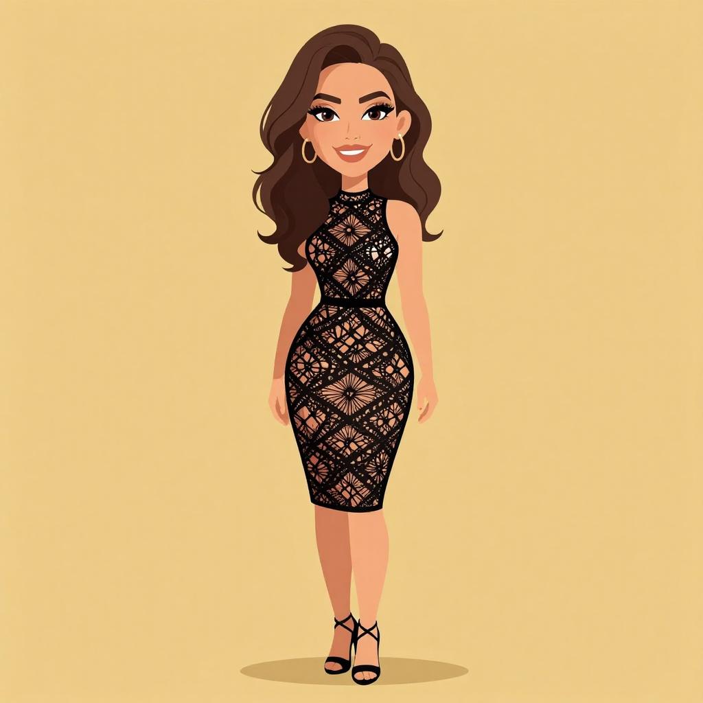 Woman with pretty face and pretty hair. smiling Woman, sexy, strapless bodycon dress with transparent mesh and solid horizontal panels, knee-length, black ankle-strap high heels, gold cuff bracelet. --sref 1467