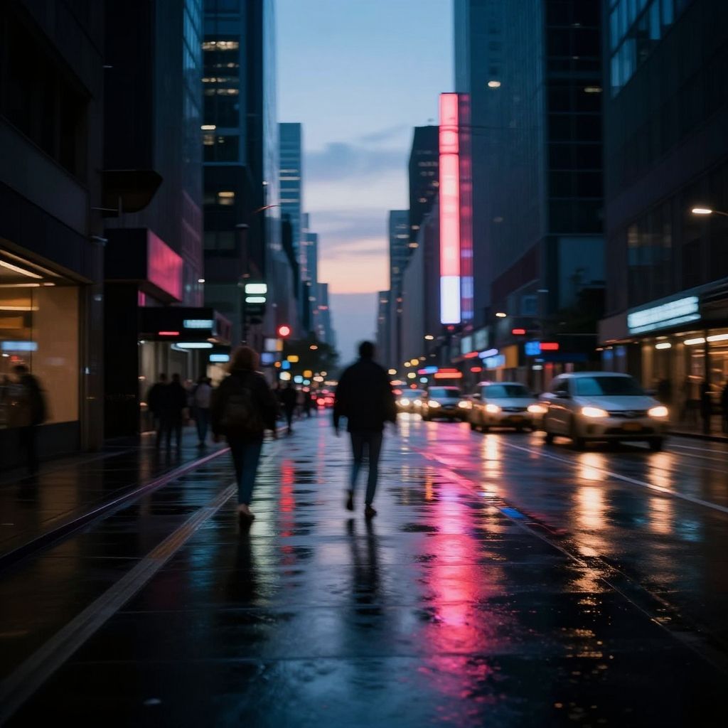 Golden Hour Rainy Street Reflections
