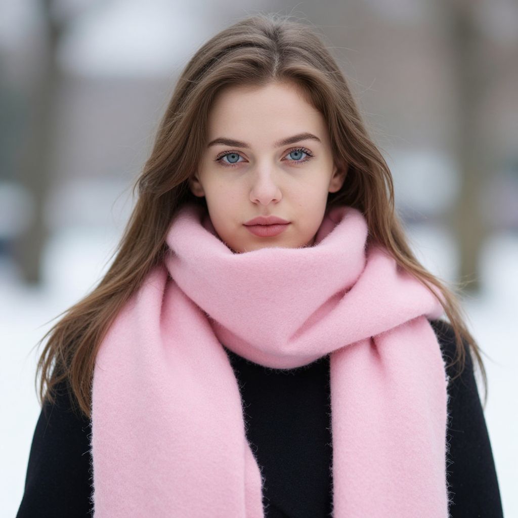 "casual winter birthday, 1girl, solo, scarf, realistic, hat, blurry, blonde hair, long hair, striped scarf, hands in pockets, striped clothes, blurry background, looking at viewer, multicolored scarf, photorealistic, jacket, lips, depth of field, buttons, upper body Realistic photo of casual sexy person with pretty face"