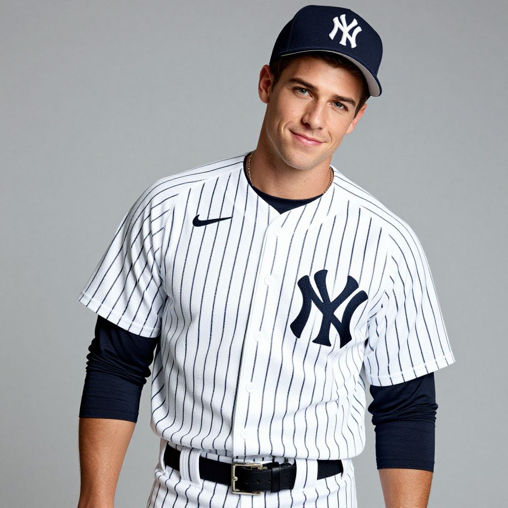 Confident Young Man in Yankees Uniform