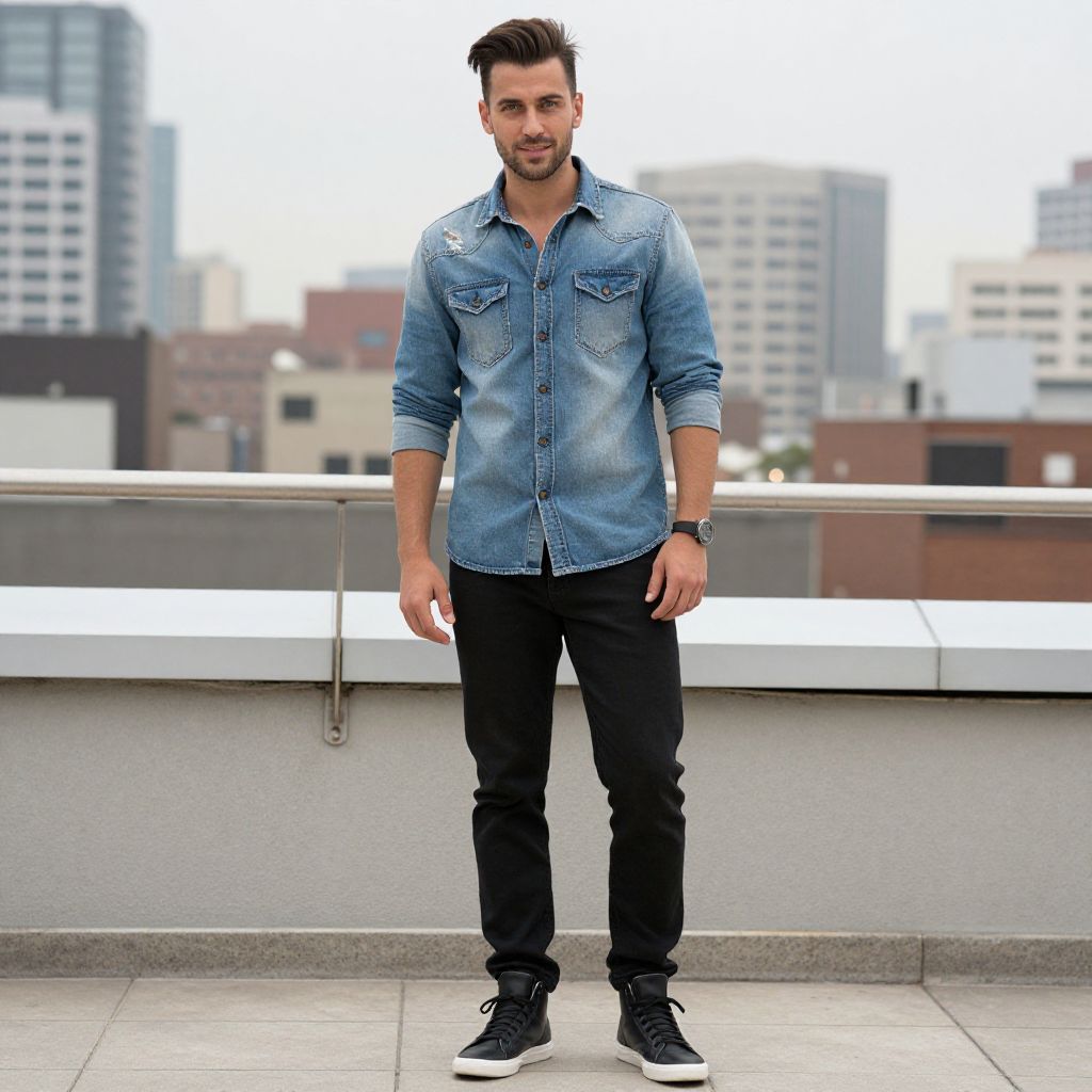 A man, black muscle tee, olive green jogger shorts, sporty slide sandals, historic brick building, large arched windows, welcoming front steps, cri film style, confident expression. Man has masculine face and piercing eyes