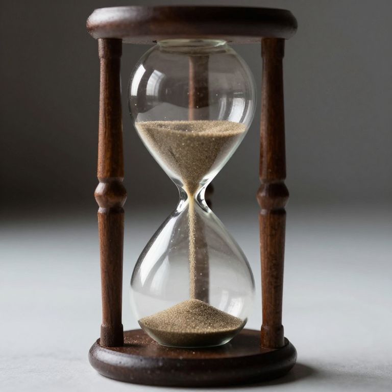 An hourglass with sand flowing through it, symbolizing the passage of time.