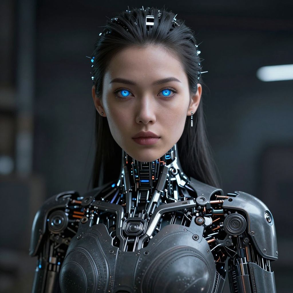Futuristic Cybernetic Woman with Glowing Eyes