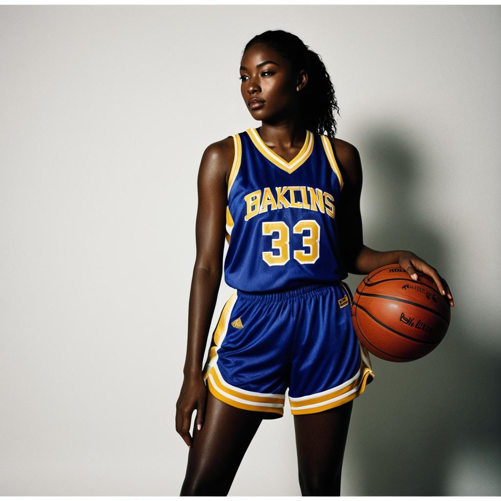 Basketball attire,basketball (object), basketball, solo, 1girl, ball, basketball uniform, shorts, sportswear, dark skin, realistic